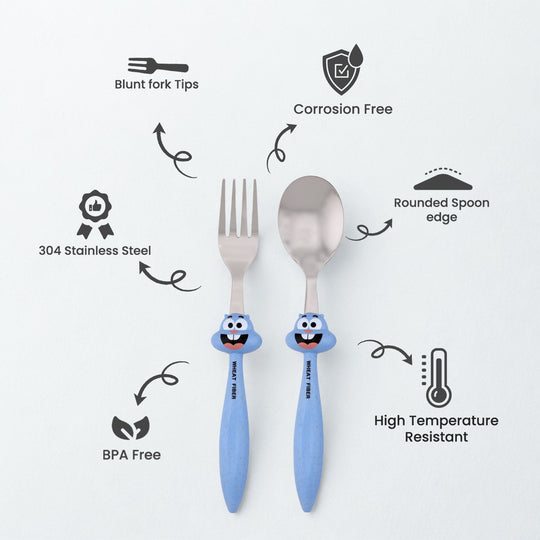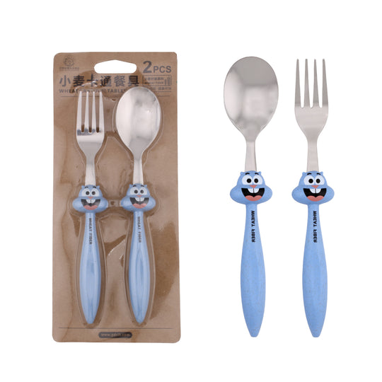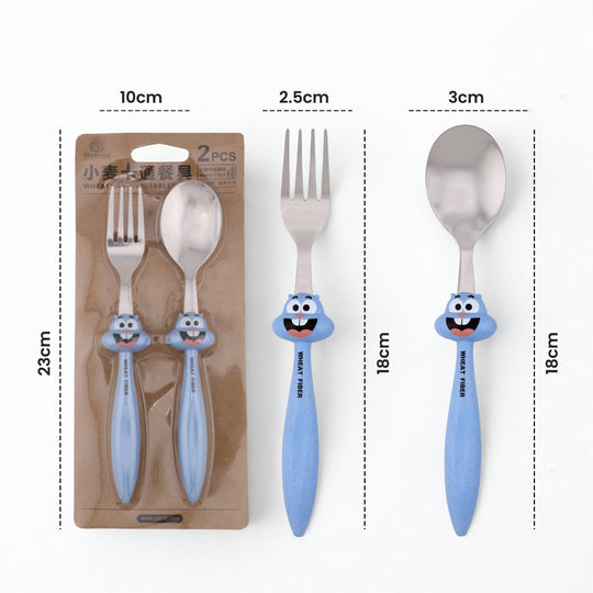 Cravista 2 Pcs Bunny Wheat Fiber Blue Cutlery Set for Kids