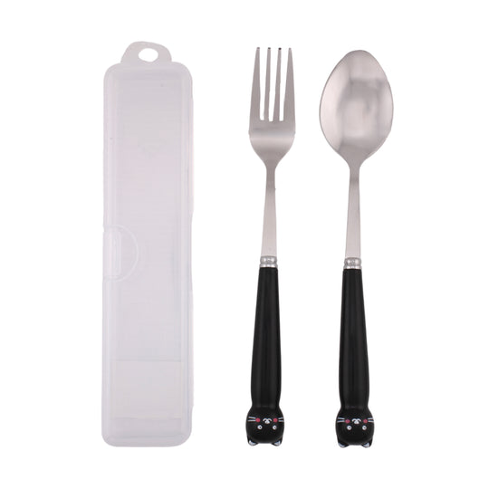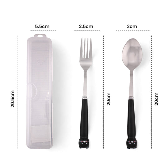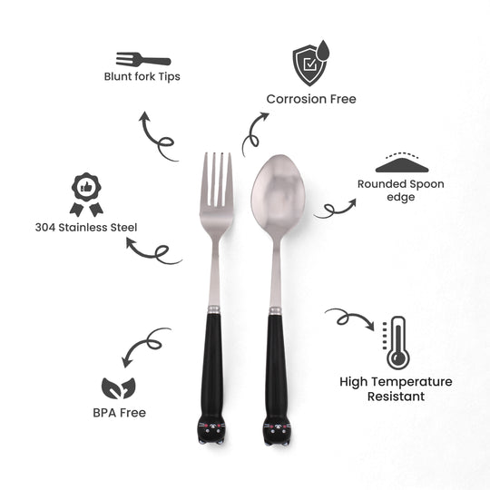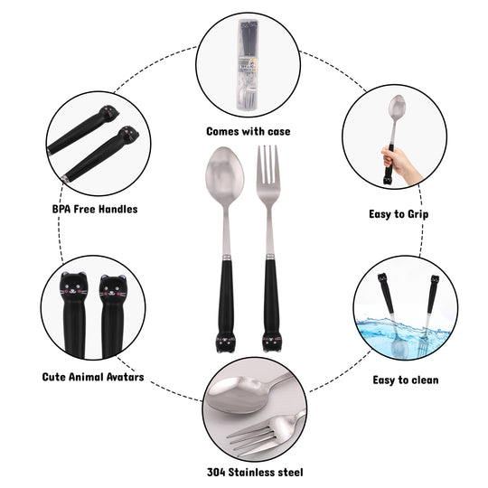 Cravista 2-Piece Stainless Steel BPA Free Kids Spoon & Fork Cutlery Set with Case (Black)