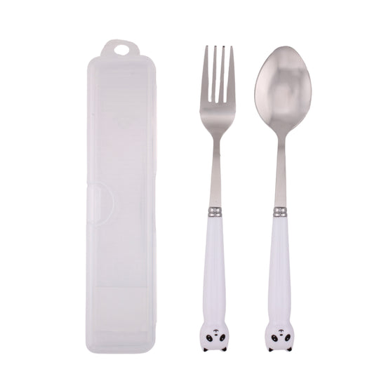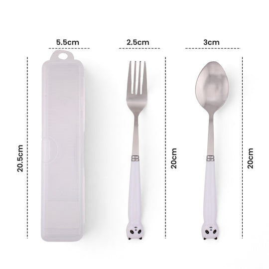 Cravista 2-Piece Stainless Steel BPA Free Spoon and Fork Kids Cutlery Set with Case (White)