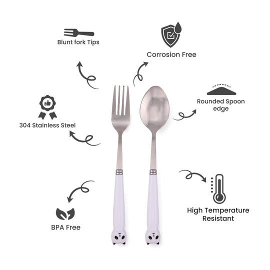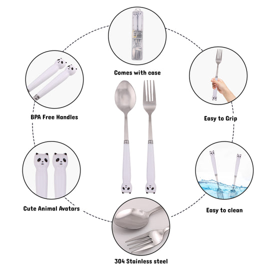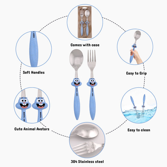About this itemMade from food-grade 304 stainless steel, safe to use.The fork has round tines and spoon has smooth edges, which has no hurt for kids.Lovely animal pattern makes mealtime more fun.Comes with a travel case,...Regular price Dhs. 19.00Regular price Dhs. 19.00