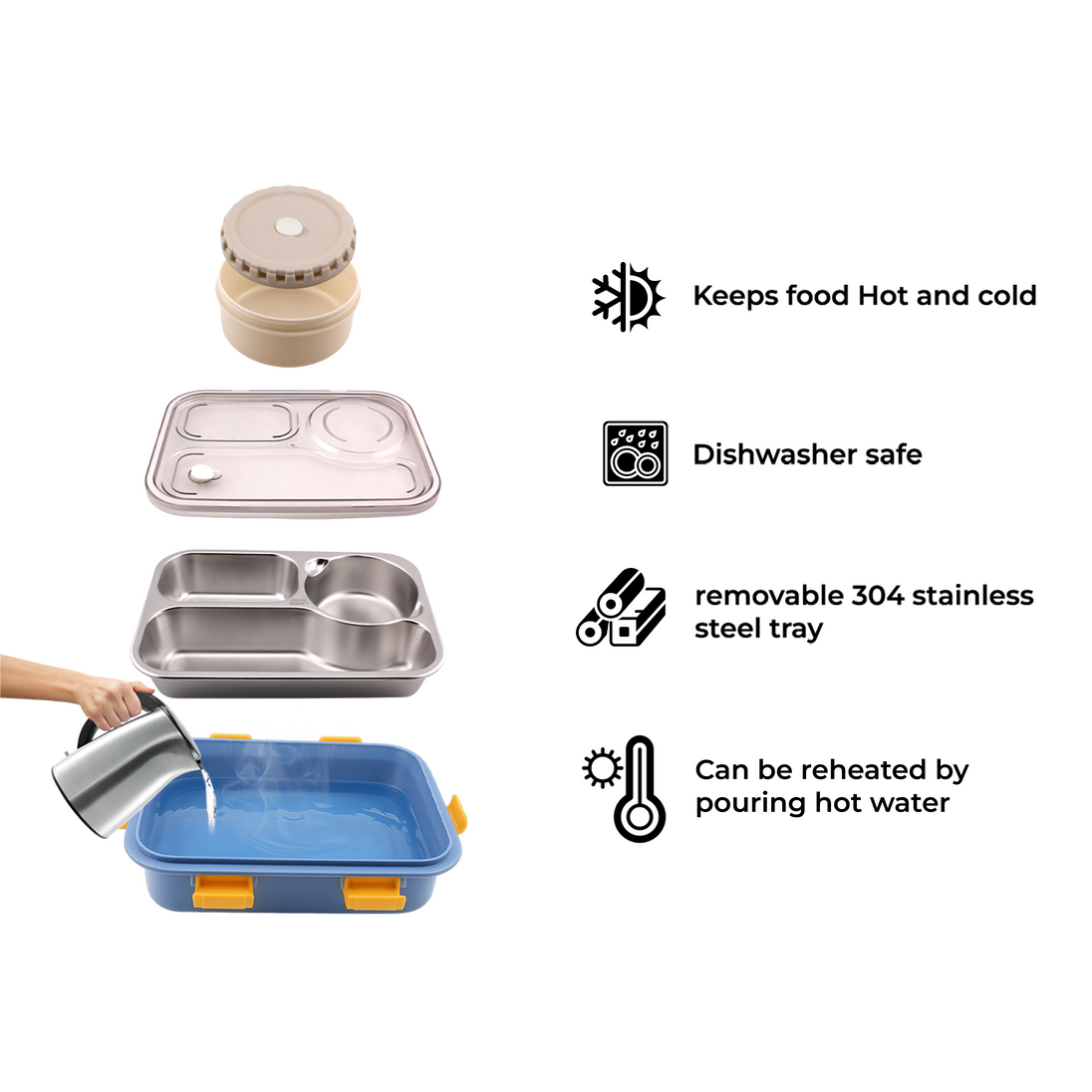 - DISHWASHER SAFE: This lunch box with soup bowl is easy to clean, just take the metal tray and soup bowl out and put it separately in the dishwasher.