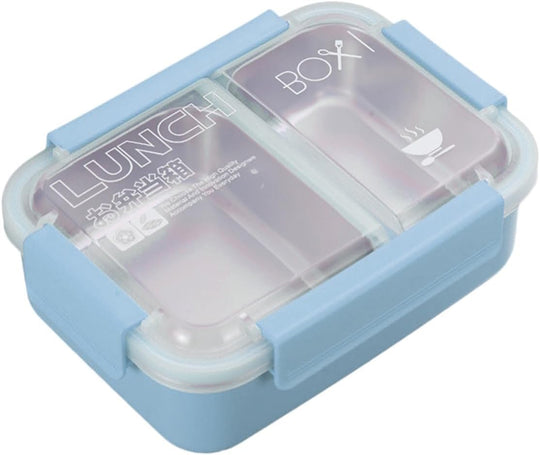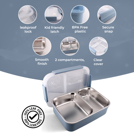 Cravista Stainless Steel 2 Compartments Blue Bento Lunch Box with Removable Inner Tray - Insulated, Leak Proof Bento Box for Kids