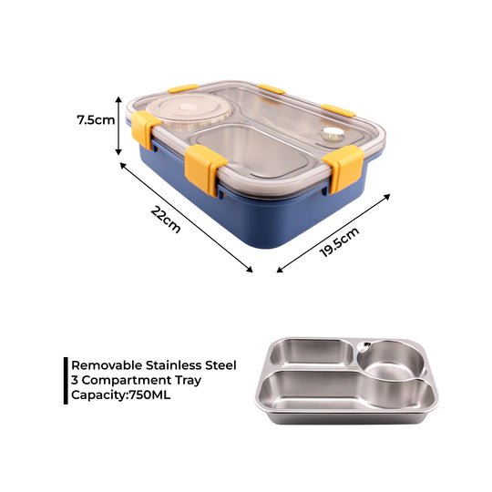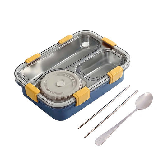 Cravista Stainless Steel Bento Blue Lunch Box with Soup Bowl | 3-Compartments Tiffin Box for Adults Kids