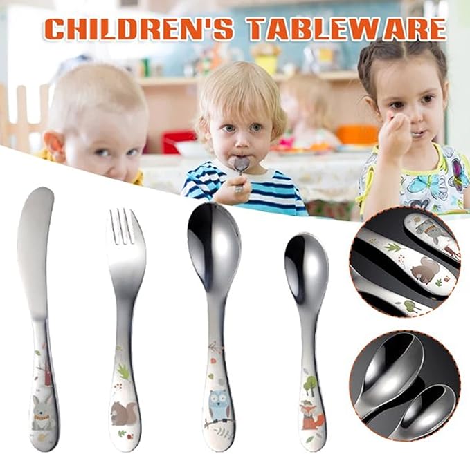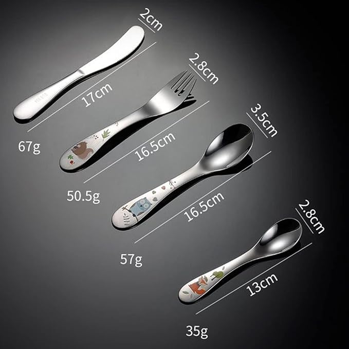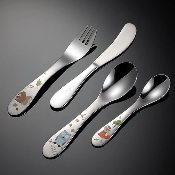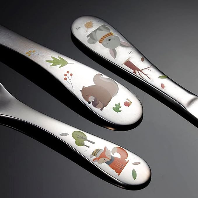 STAINLESS STEEL CHILDREN CUTLERY SET: this kids cutlery set is made of high-quality stainless steel, which is not easy to rust and can be used for a long time, durable tableware.it lets your little one learn how to eat mess free without moving onto grown up cutlery.
