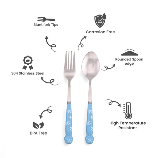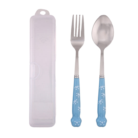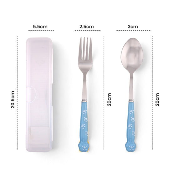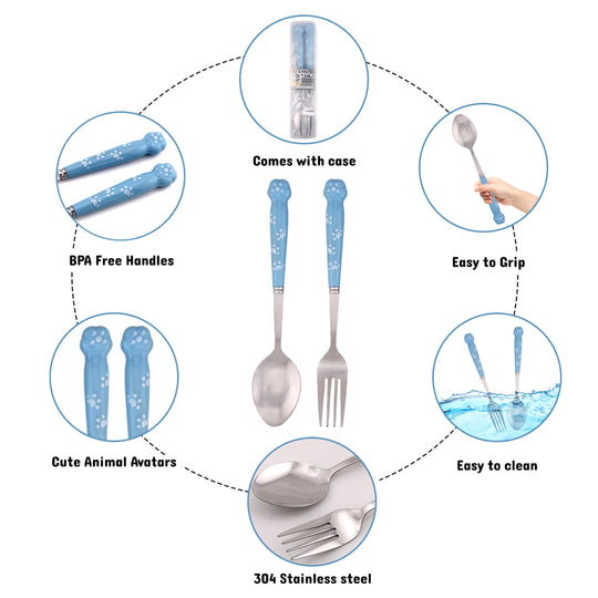 Cravista Kids Spoon and Fork Blue Paw engraved Blue Cutlery Set with Case