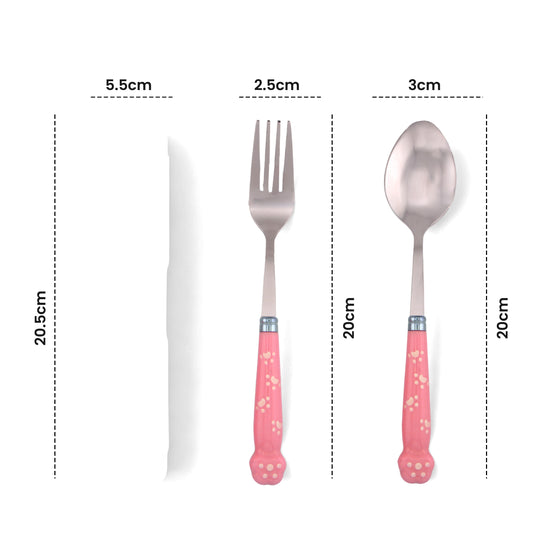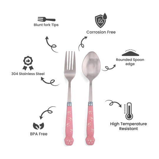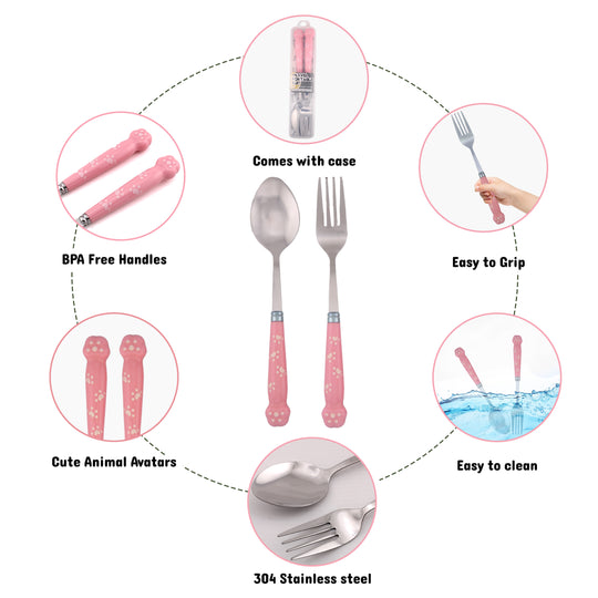 Cravista Kids Spoon and Fork Pink Paw engraved Cutlery Set with Case