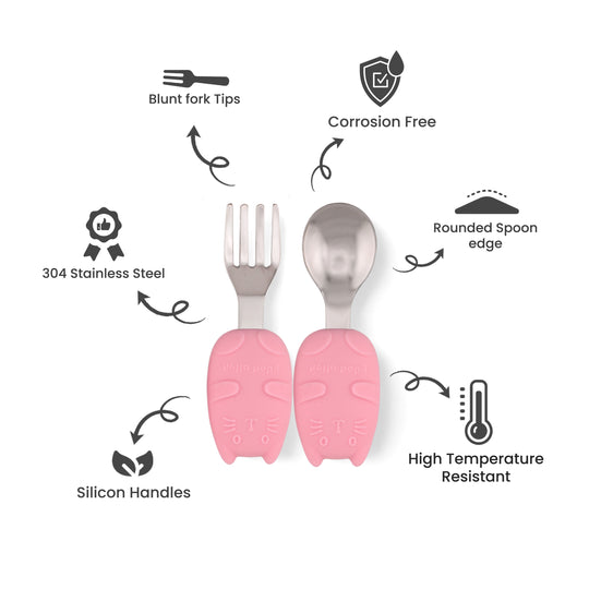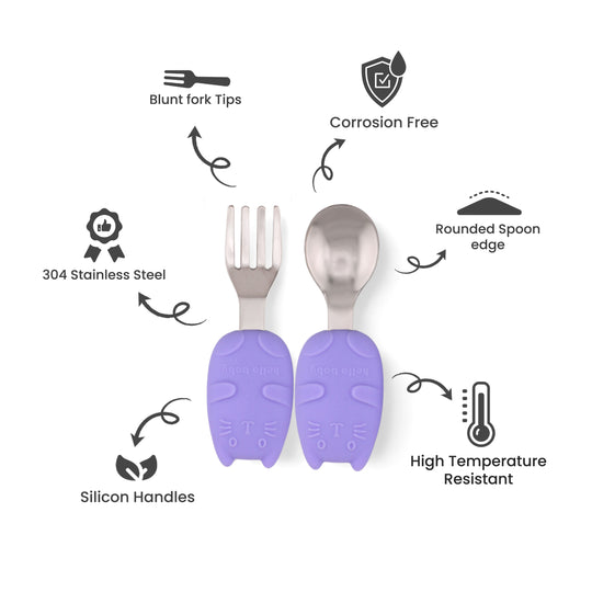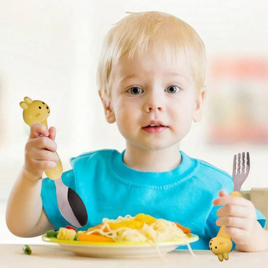 Designed with young diners in mind, Cravista's kids cutlery sets are crafted from high-quality stainless steel, ensuring safety and durability. Each set includes two spoons and two forks in different sizes, specially designed to support growing toddlers through various stages of self-feeding.