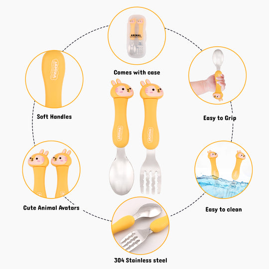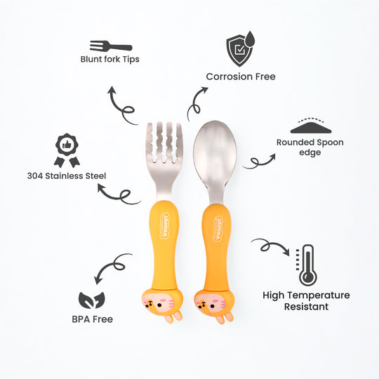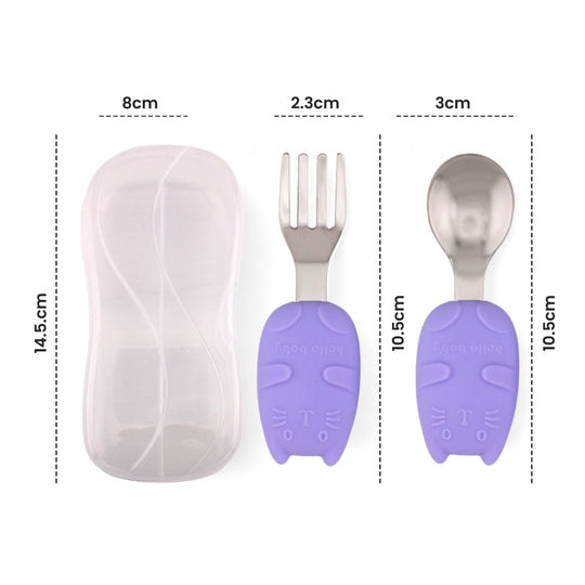 About this item TODDLER CUTLERY SET: This kids cutlery set includes 1 baby spoon, 1 baby fork and a portable travel cutlery case. SIZE: Spoon is 10.5*3cm (4.1*5.1in), fork is 10.5*2.3cm (4.1*1in) and cutlery case is...Regular price Dhs. 29.99Regular price Dhs. 29.99 -
