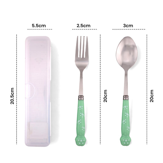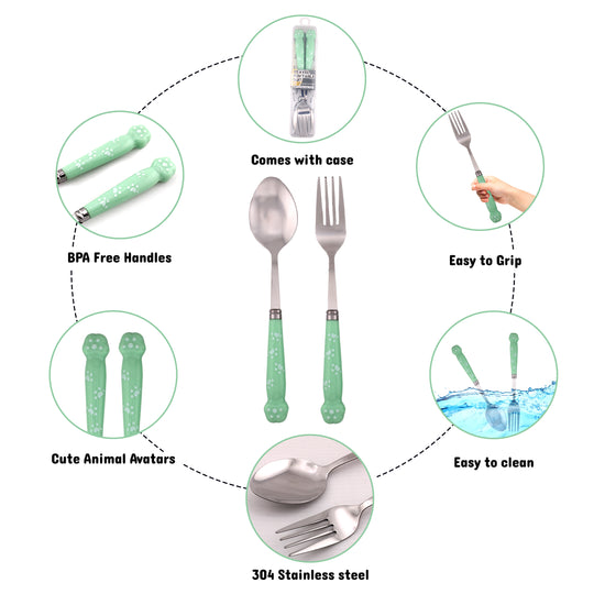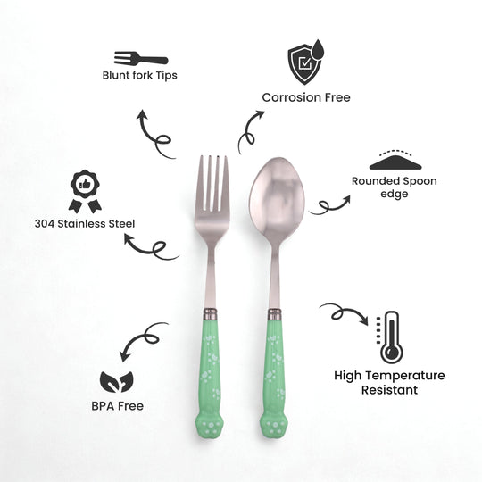 Cravista Kids Spoon & Fork Cutlery Paw engraved Green Set with Case