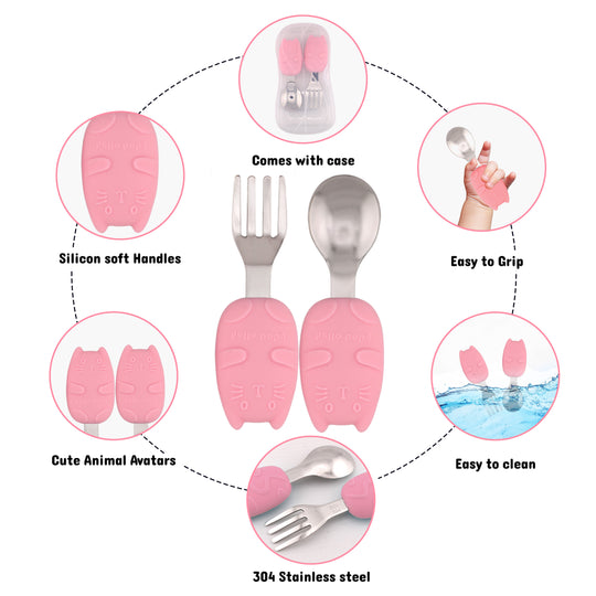 Cravista Stainless Steel Spoon and Fork Pink Cutlery Set with Case for Toddlers