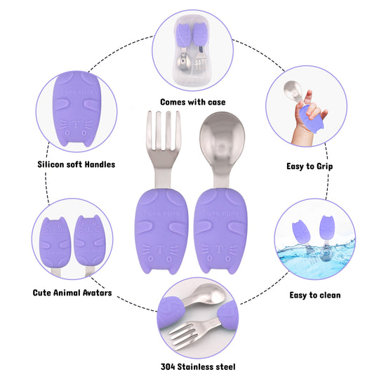 Cravista Stainless Steel Spoon and Fork Purple Cutlery Set with Case for Toddlers