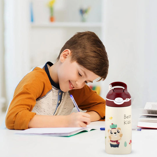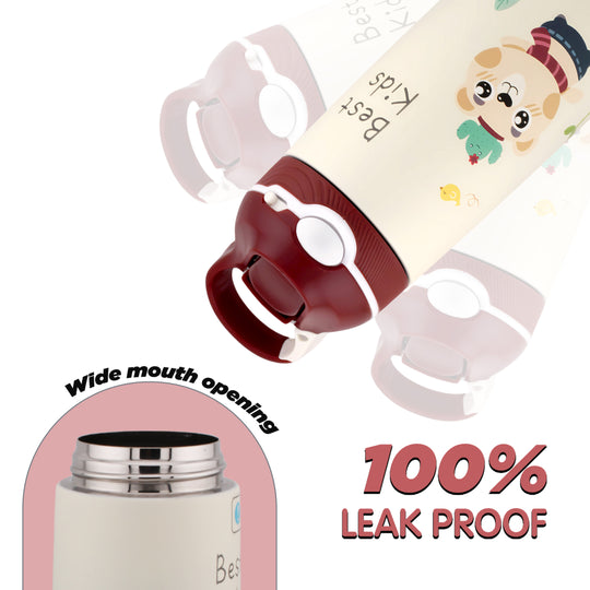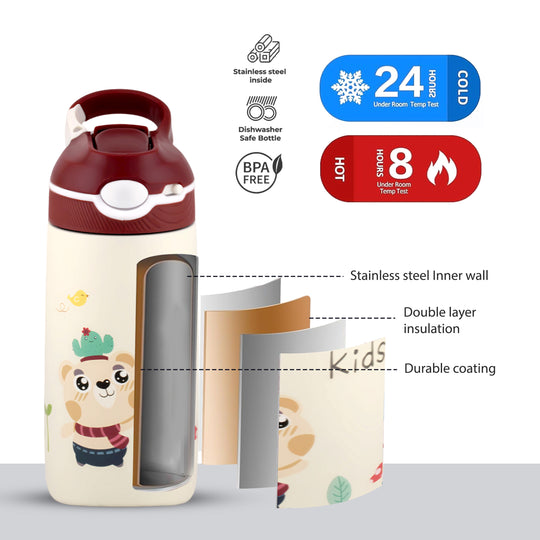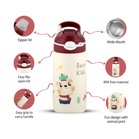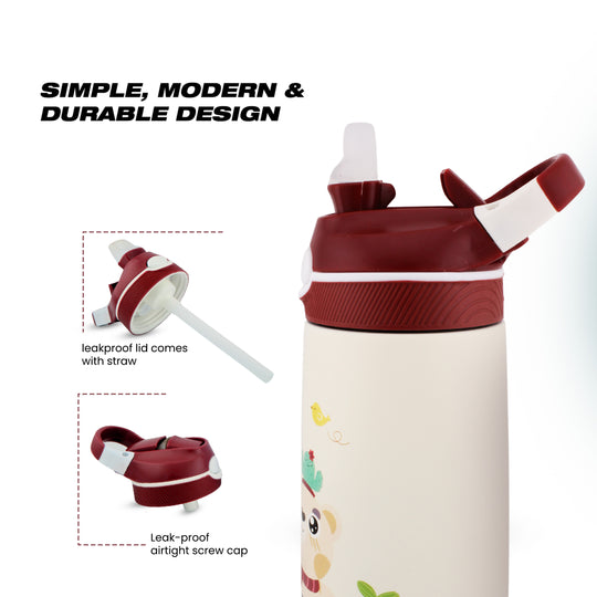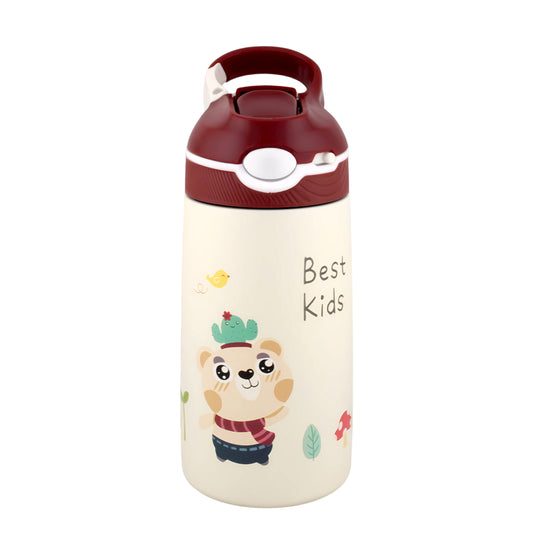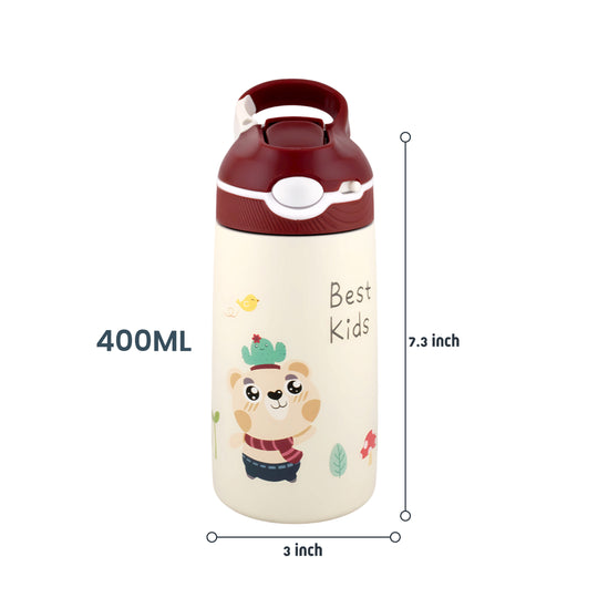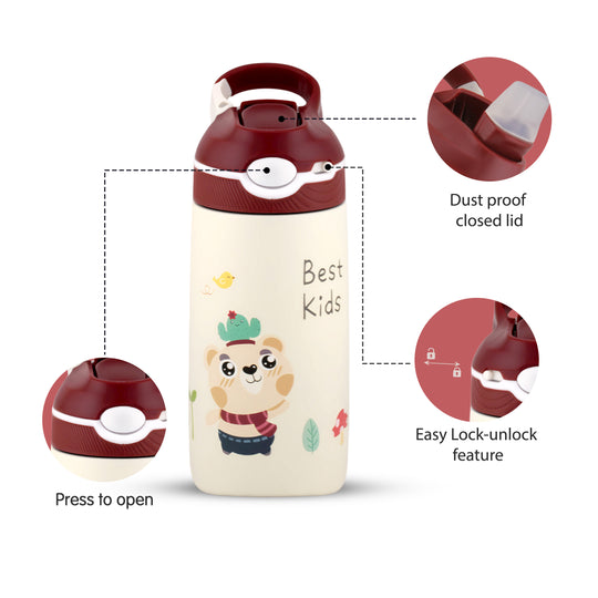 Cravista Stainless Steel Kids Teddy Bear Water Bottle with Straw & Handle (Brown)