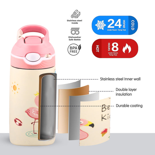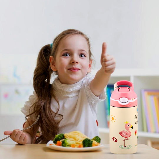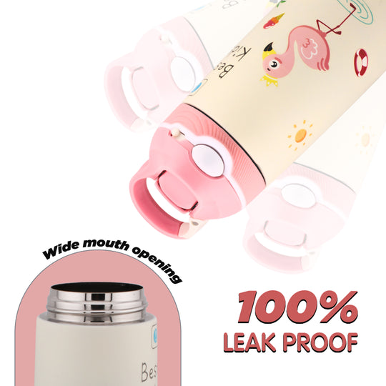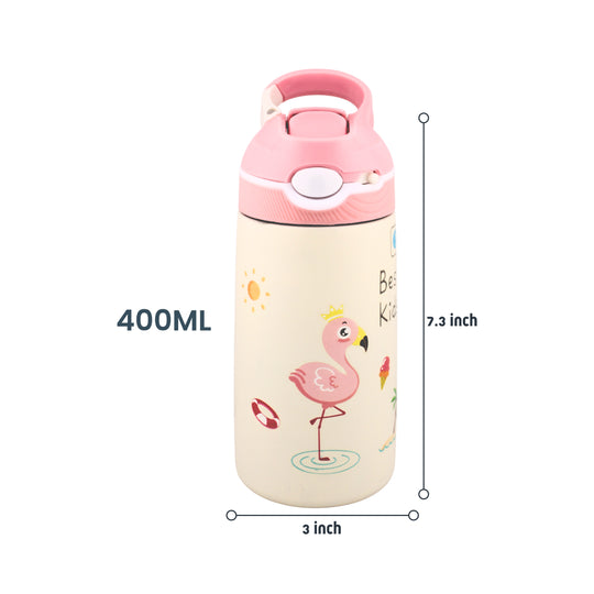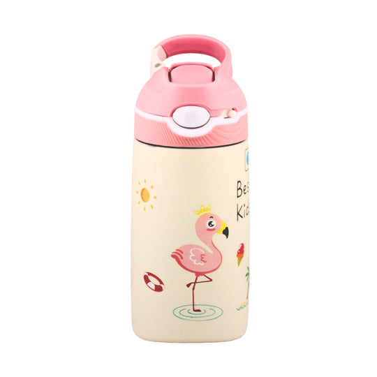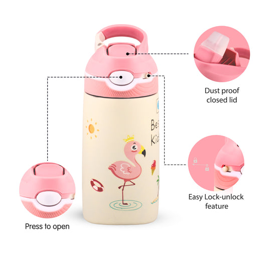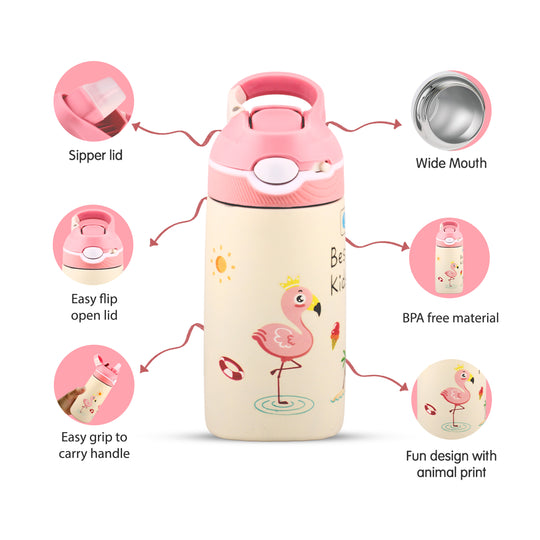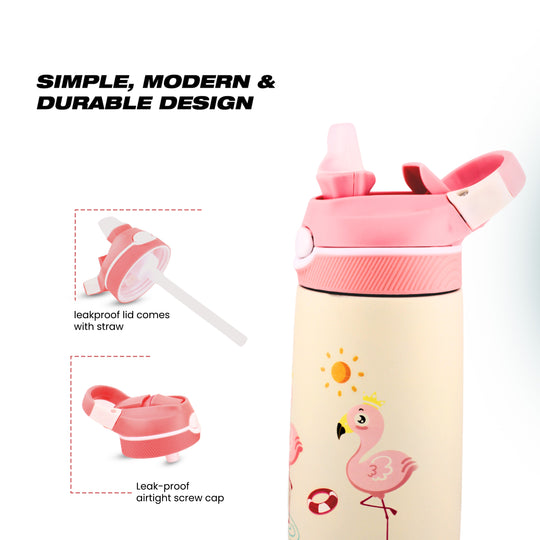 Cravista Stainless Steel Kids Water Bottle with Straw & Handle- Leakproof BPA Free Flamingo Water Bottle (Pink) Water Bottle