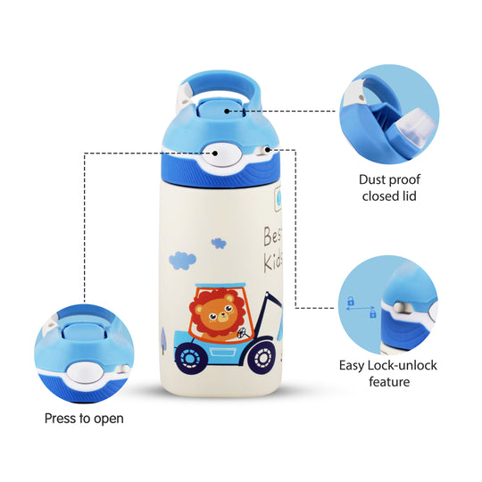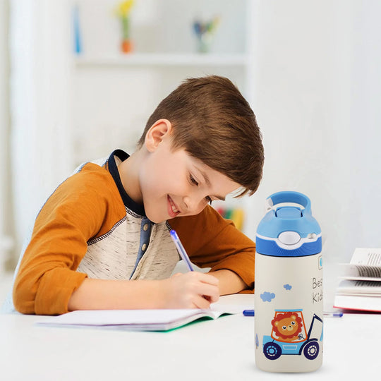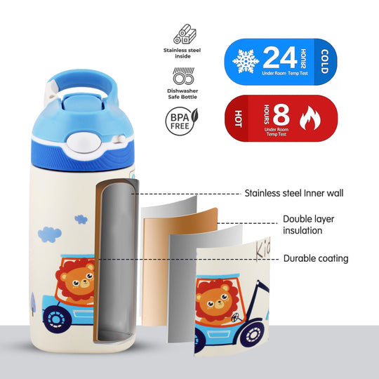 Stainless Steel Kids Water Bottle with Straw & Handle- Leakproof BPA Free Blue Water Bottle for Boys (Blue)