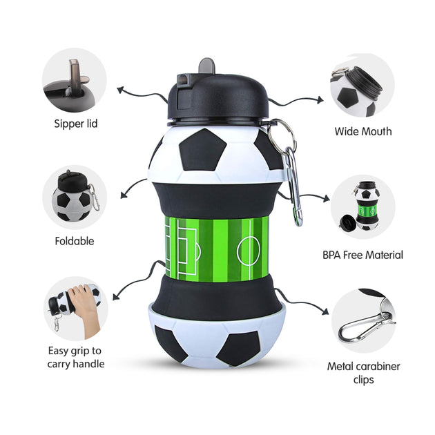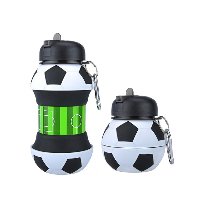 Cravista Collapsible Water Bottle, Soccer Clip-On Silicone Foldable Tumbler for Kids, Portable Flexible Leakproof Water Cup (White)