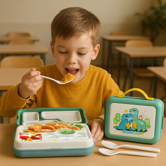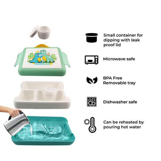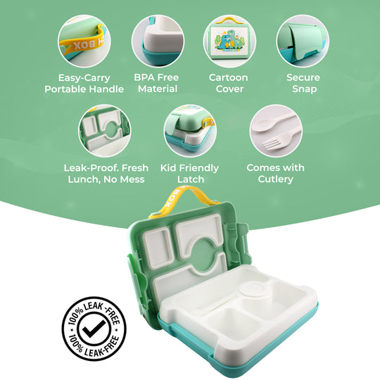 Cravista Dinosaur Kids Bento Lunch Box -Leakproof, BPA-Free, Airtight Tiffin with Spoon & Fork- 4 Compartments (Green)