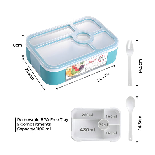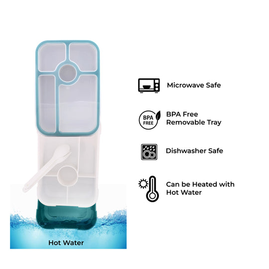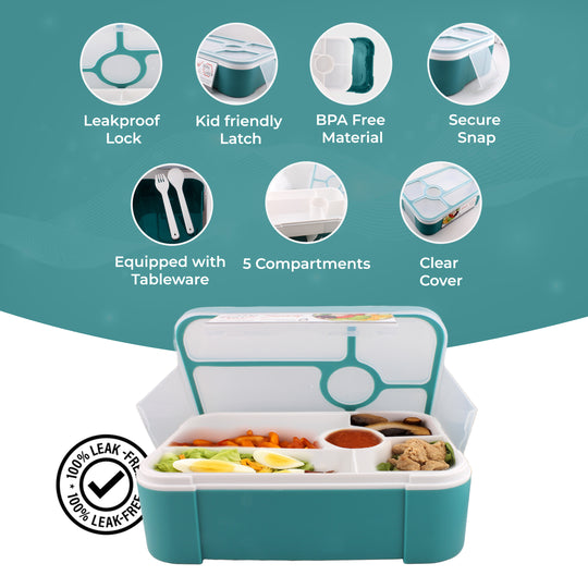 Cravista Bento Lunch Box -Leakproof, BPA-Free, Airtight Tiffin with Spoon & Fork- 5 Compartments (Green)