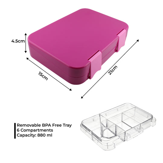 Cravista Bento Lunch Box for Kids with 4-6 Adjustable Dividers | BPA Free Leakproof 760ml Bento Box (Pink)
