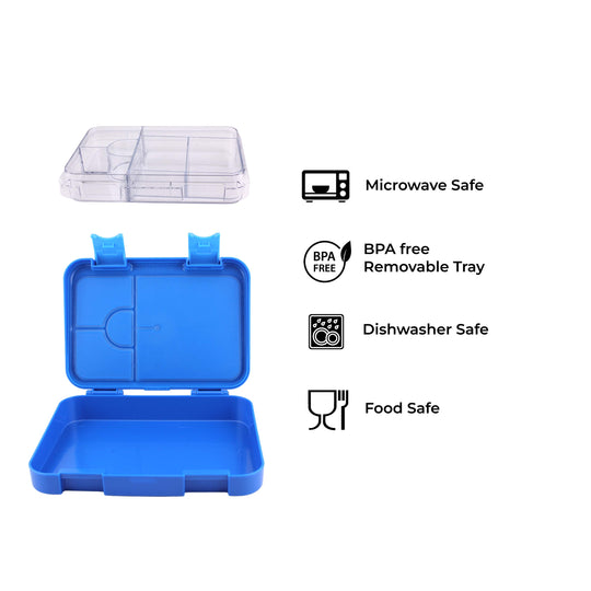 Cravista Bento Lunch Box for Kids with 4-6 Adjustable Compartments, BPA Free Leakproof 760ml Tiffin Box (Blue)