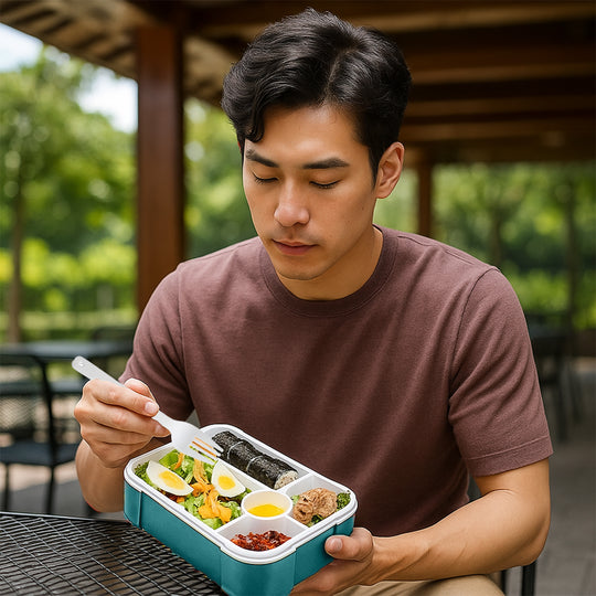 About this item 4-COMPARTMENTS BENTO LUNCHBOX: This bento box features 4 separate compartments for organizing various food items, while the special compartment in the middle is perfect for storing sauces. COMES WITH SPOON AND FORK: This...Regular price Dhs. 69.99Regular price Dhs. 69.99 -