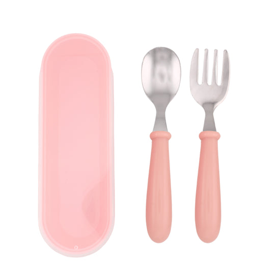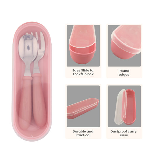 Cravista Kids Cutlery Set with Case, Round Edge Stainless Steel Spoon & Fork Cutlery Set (Pink)