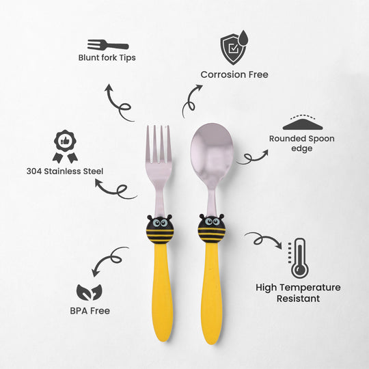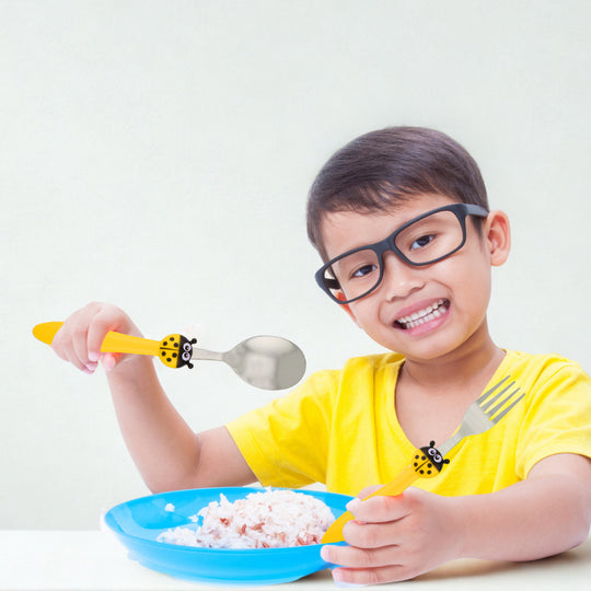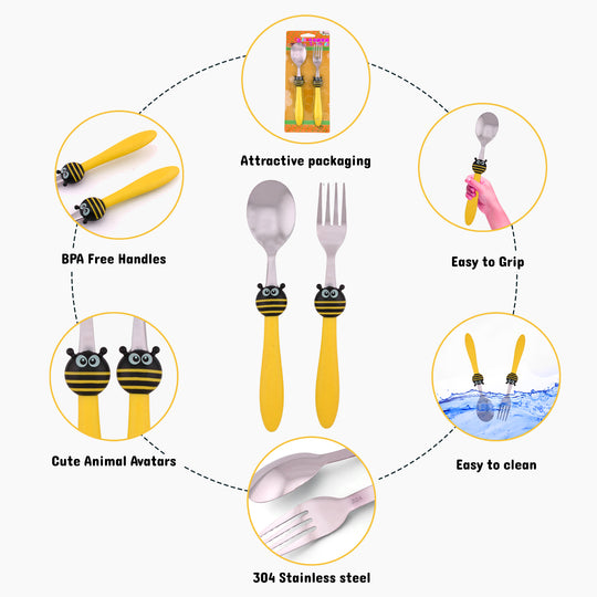 Cravista Kids Cutlery Set, Lightweight Stainless Steel Spoon and Fork Flatware (Yellow)