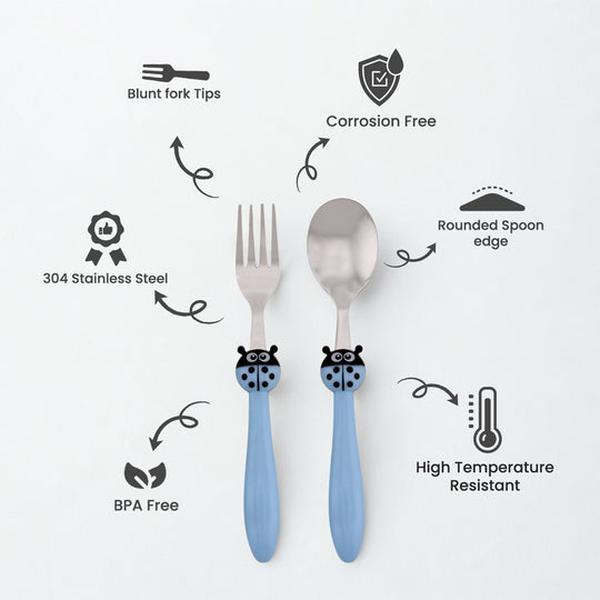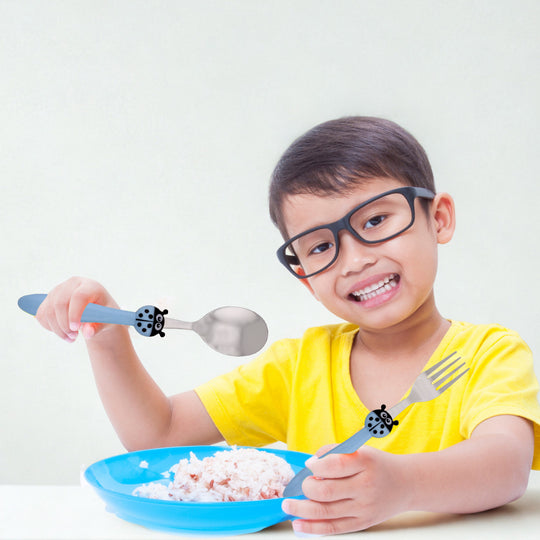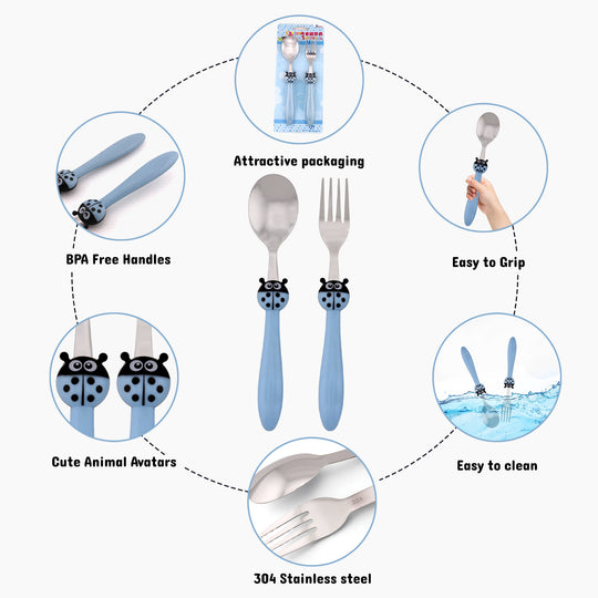 Cravista Kids Cutlery Set, Lightweight Stainless Steel Spoon and Fork Flatware (Blue)