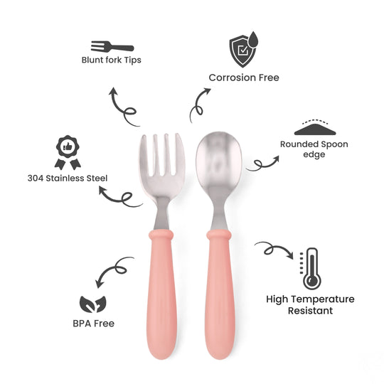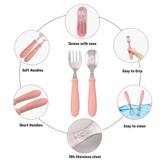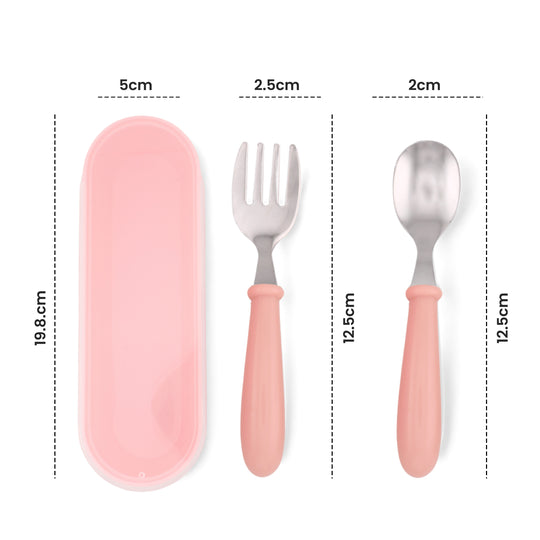 Cravista Kids Cutlery Set with Case, Round Edge Stainless Steel, BPA Free Spoon & Fork Set (Pink)