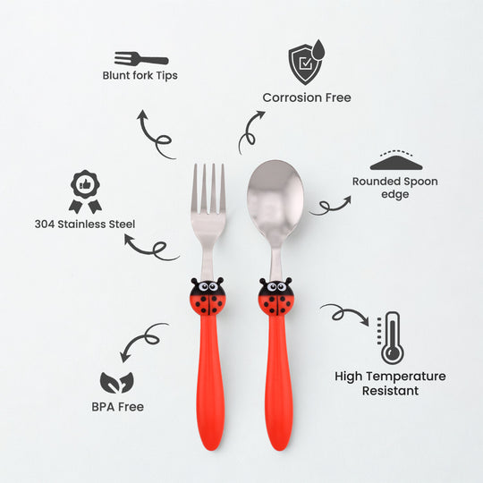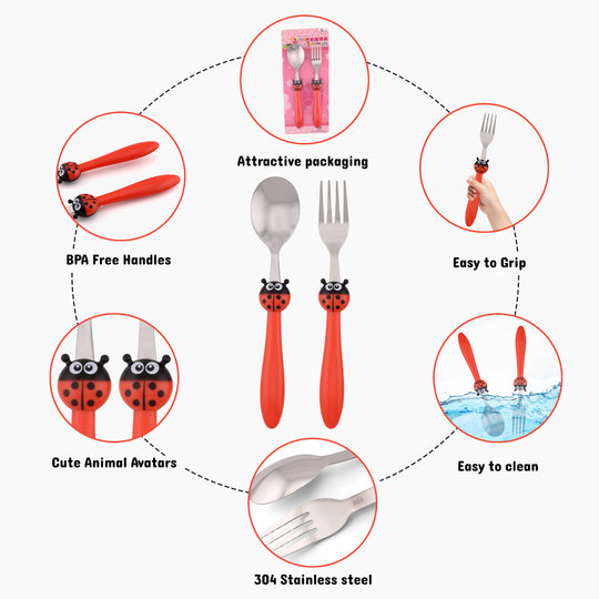 Cravista Kids Cutlery Set, Lightweight Stainless Steel Spoon and Fork Flatware (Red)