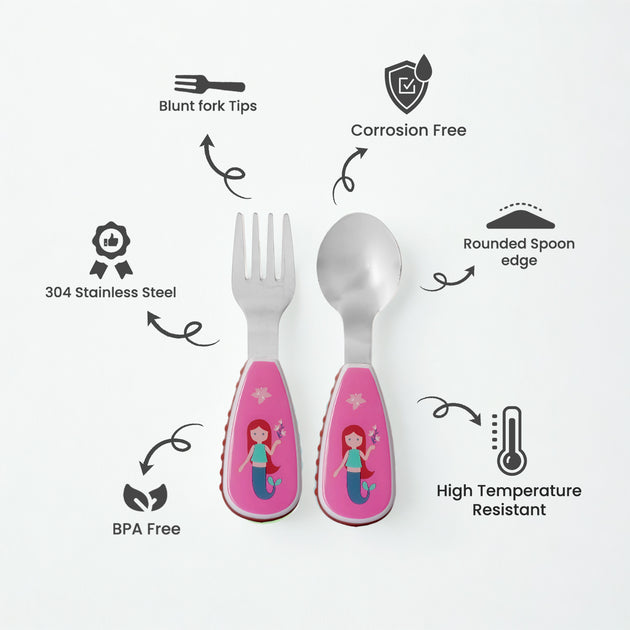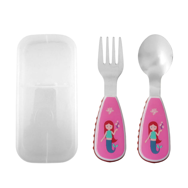 Cravista Kids Spoon and Fork Mermaid Cutlery Set with Case for School