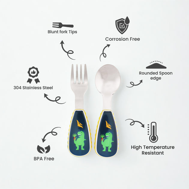 Cravista Kids Spoon and Fork Dinosaur Cutlery Set with Case for School