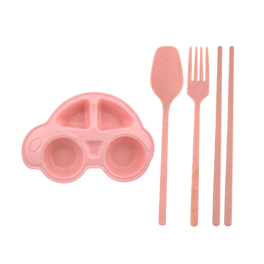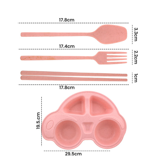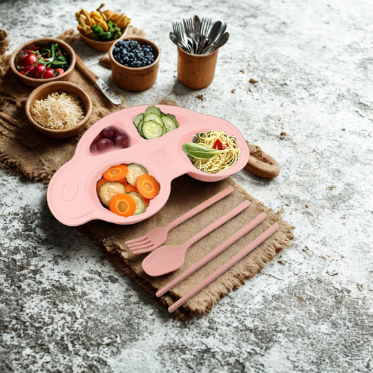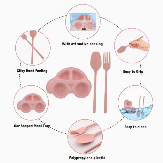 Cravista Car Shape Baby Food Plate with Anti-Slip Base and Cutlery Set (Pink)
