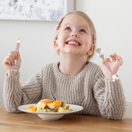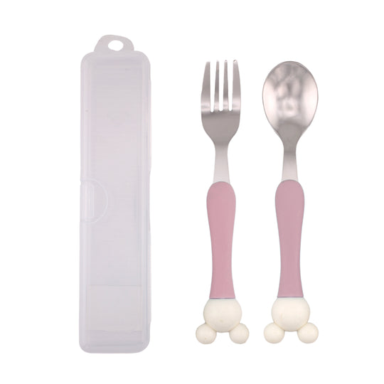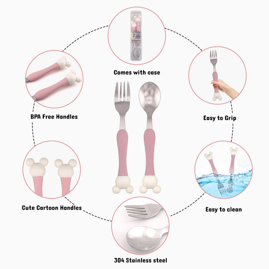Cravista Kids Cutlery Set with Case, Round Edge Stainless Steel BPA Free Handles (Pink)