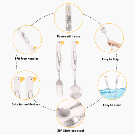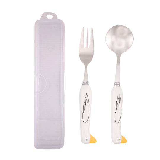 Cravista 2-Piece Stainless Steel BPA Free Spoon and Fork Kids Cutlery Set with Case (White)
