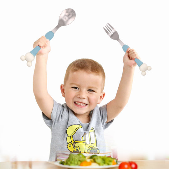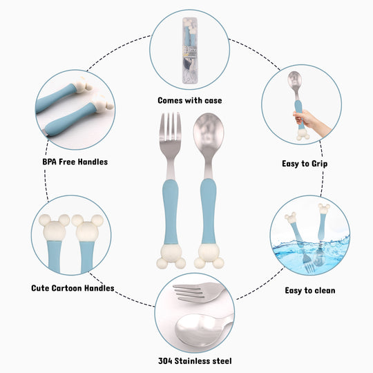 Cravista Kids Cutlery Set with Case, Round Edge Stainless Steel BPA Free Handles (Blue)