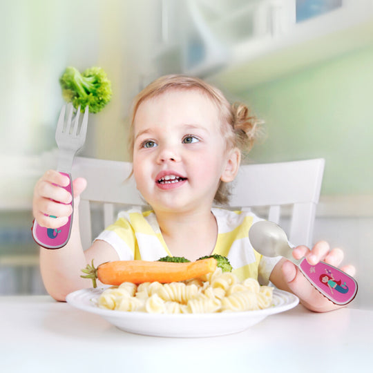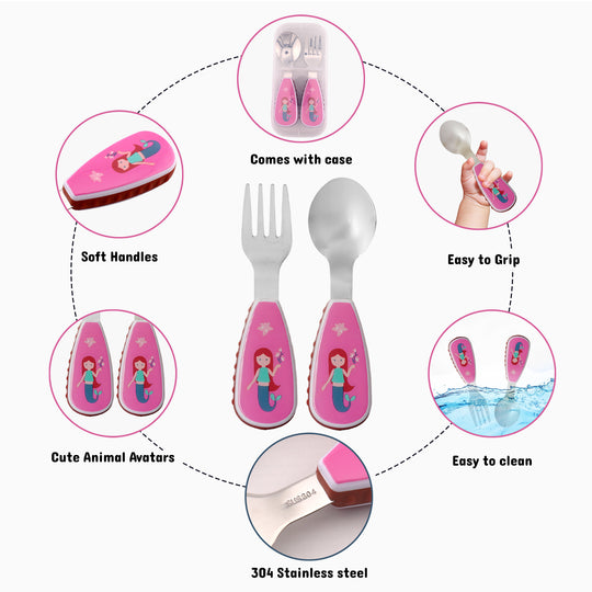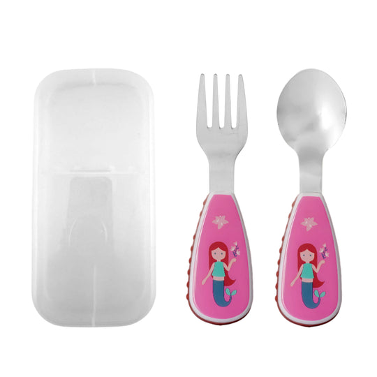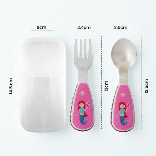 Cravista Kids Spoon and Fork Mermaid Cutlery Set with Case for School