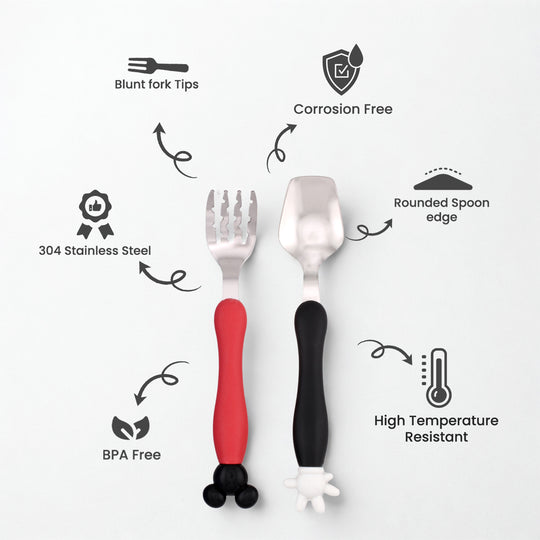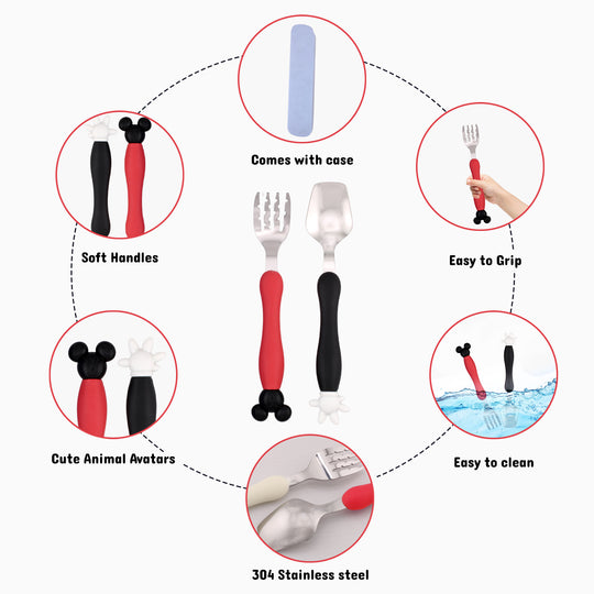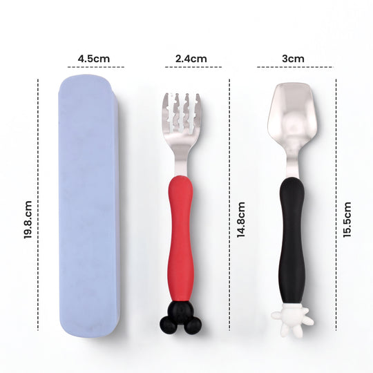 Product descriptionALL-INCLUSIVE FLATWARE SET: This lovely and practical cutlery set includes 1 fork, 1 spoon and 1 portable case. Cravista Cutlery Set with Case – Mickey Mouse Spoon and Fork Cutlery Set with Travel Case, Toddler...Regular price Dhs. 36.99Regular price Dhs. 36.99 -