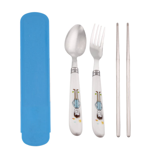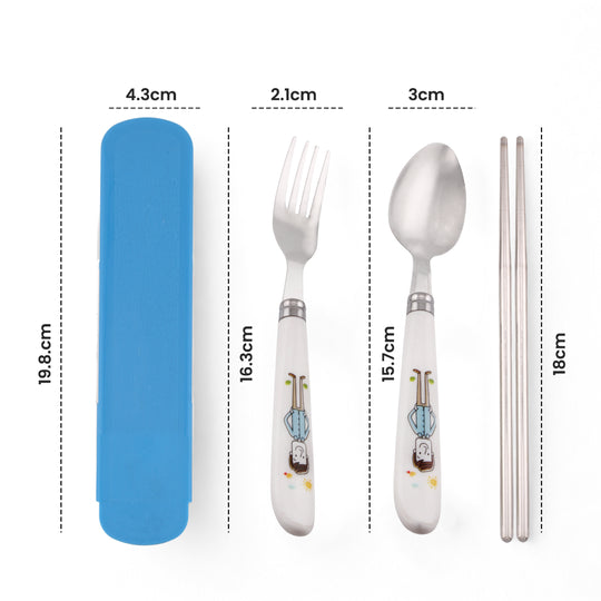 Cravista Kids Cutlery Set with Case, Round Edge Stainless Steel Soft Grip Spoon, Fork & Chopsticks Set (Blue)