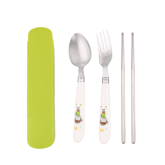 Cravista Kids Cutlery Set with Case, Round Edge Stainless Steel Soft Grip Spoon, Fork & Chopsticks Set (Green)
