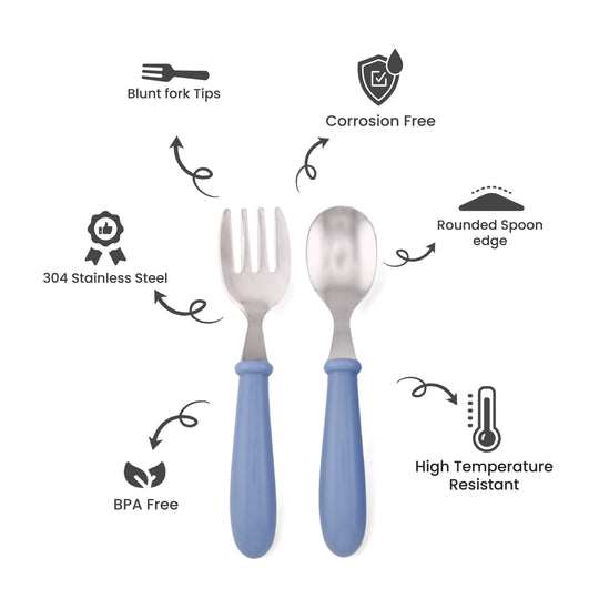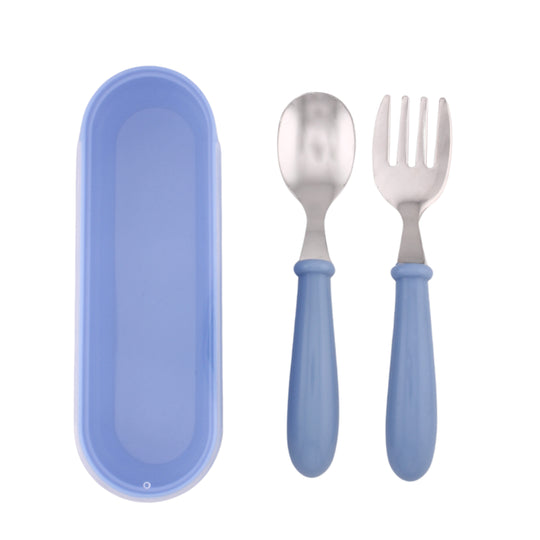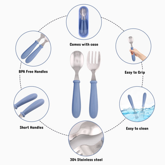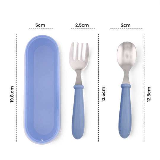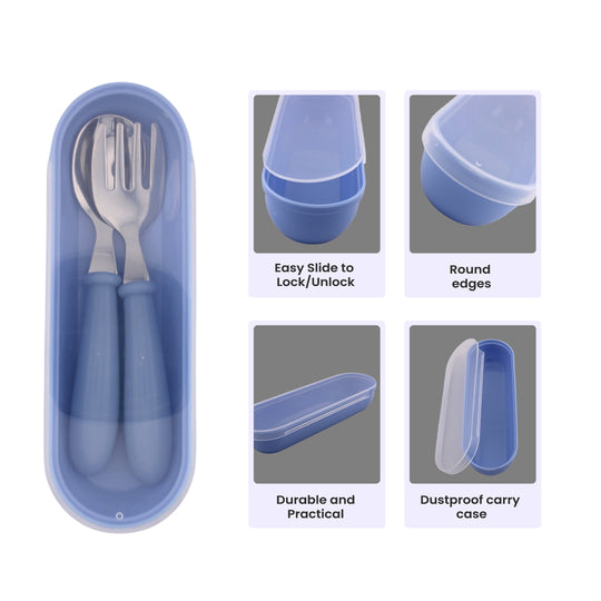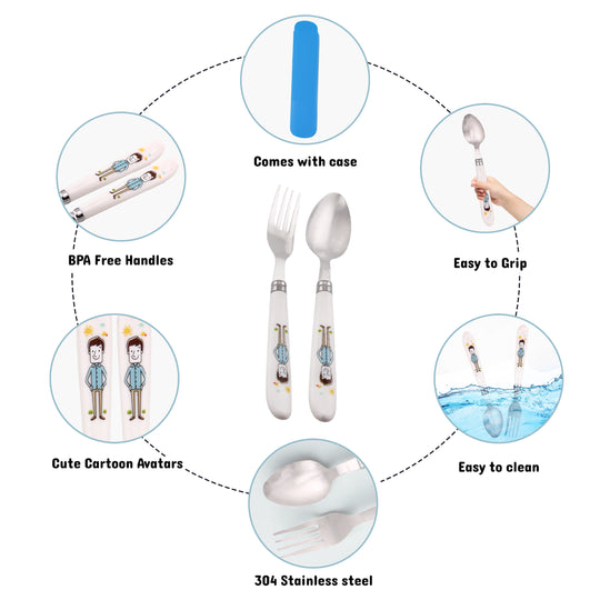 Cravista Kids Cutlery Set with Case, Round Edge Stainless Steel, BPA Free Spoon & Fork Set (Blue)