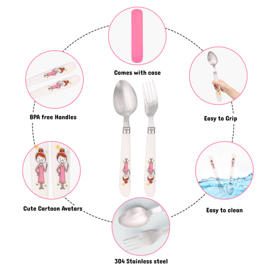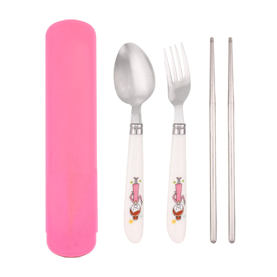 Cravista Kids Cutlery Set with Case, Round Edge Stainless Steel Soft Grip Spoon, Fork & Chopsticks Set