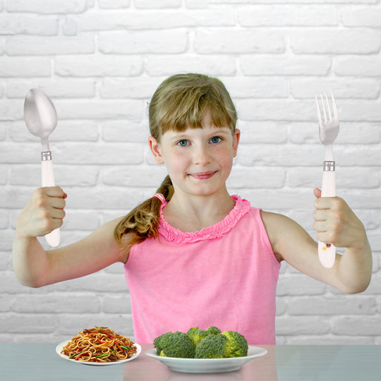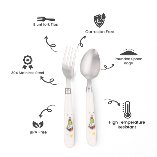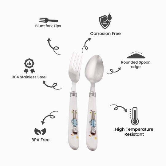 About this item Package includes: 1x Fun character engraved stainless-steel spoon, 1x Fun character engraved stainless-steel fork and 1x Pair of Stainless-steel chopsticks High-Quality Stainless Steel Kids Cutlery Set: This kid’s cutlery set is made from...Regular price Dhs. 17.99Regular price Dhs. 17.99 -