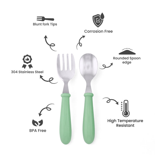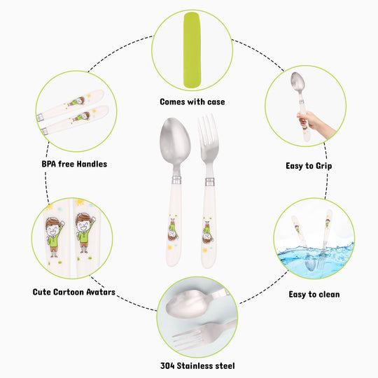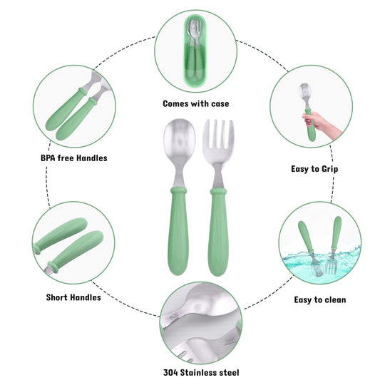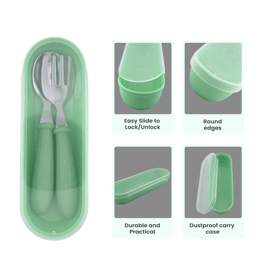 Cravista Kids Cutlery Set with Case, Round Edge Stainless Steel, BPA Free Spoon & Fork Set (Green)