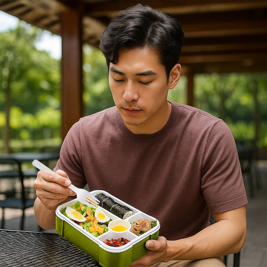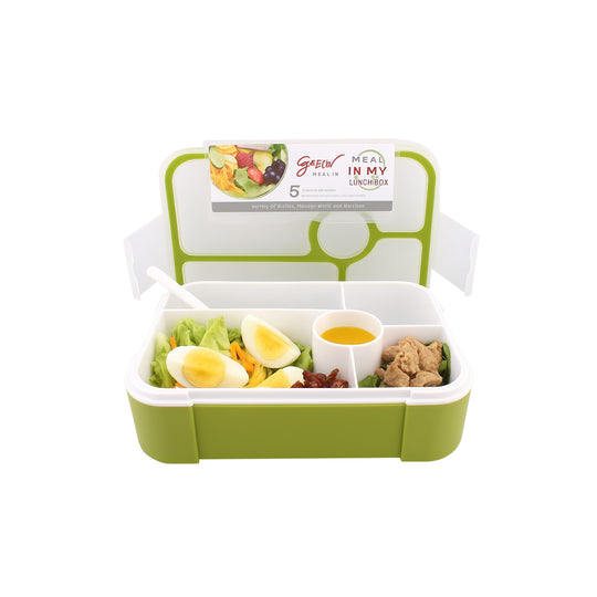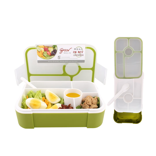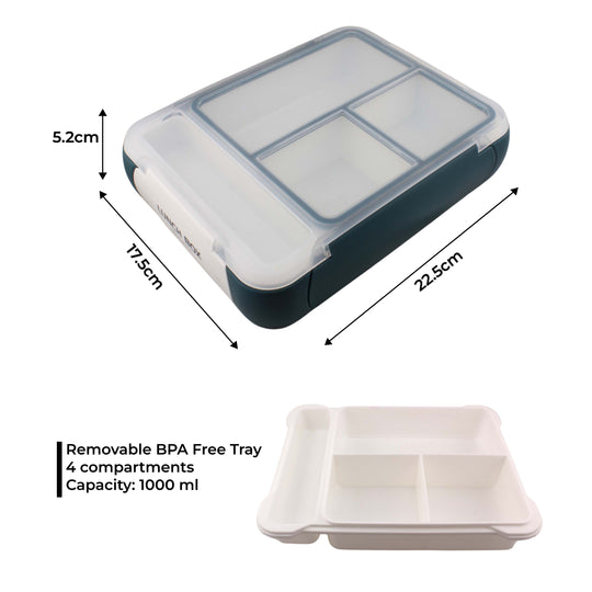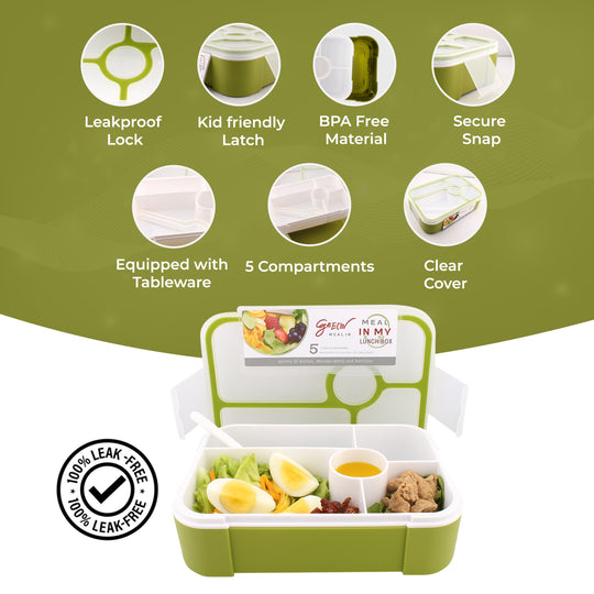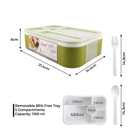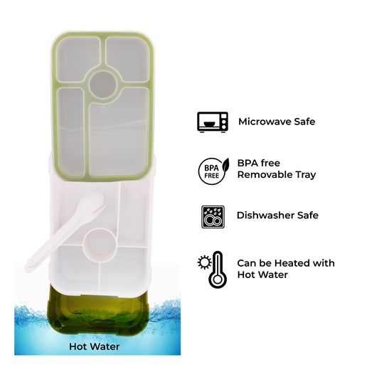 Cravista Bento Lunch Box -Leakproof, BPA-Free, Airtight Tiffin with Spoon & Fork- 5 Compartments (Green)