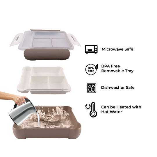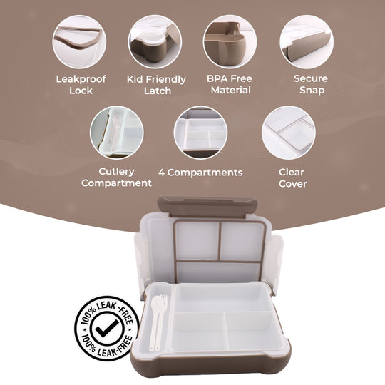Cravista Bento Lunch Box -Leakproof, BPA-Free, Airtight Tiffin with Spoon & Fork (Brown)
