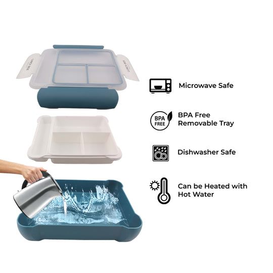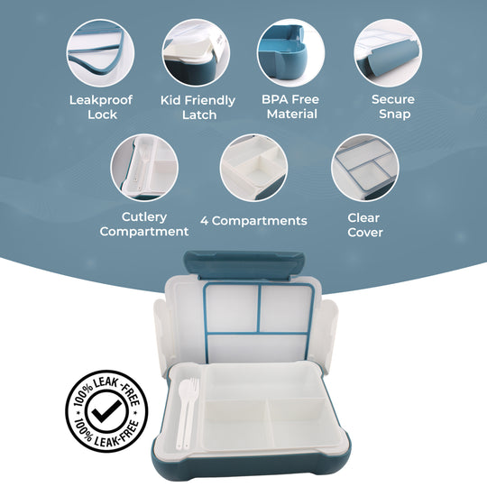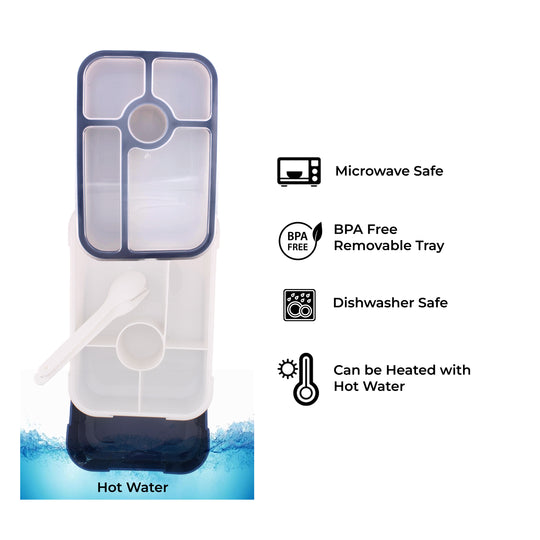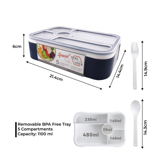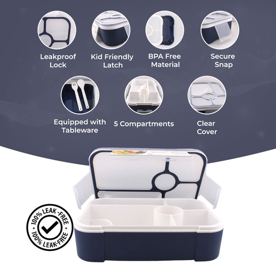 Cravista Bento Lunch Box -Leakproof, BPA-Free, Airtight Tiffin with Spoon & Fork- 5 Compartments (Blue)