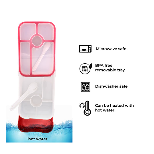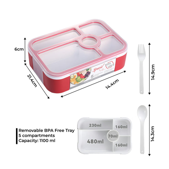 Cravista Bento Lunch Box -Leakproof, BPA-Free, Airtight Tiffin with Spoon & Fork- 5 Compartments, 1100ml (Red)