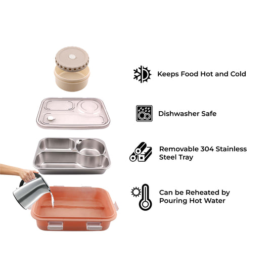 Cravista 2 Compartments Stainless Steel Orange Bento Lunch Box with Removable Inner Tray - Leak Proof Lunch Box for Kids