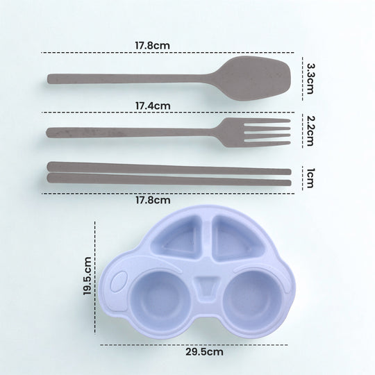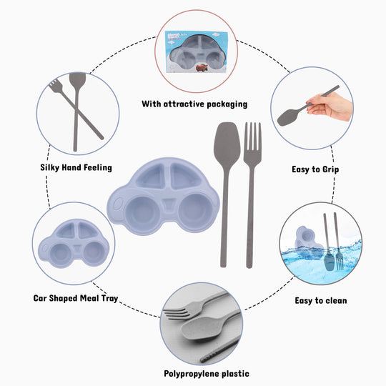 Cravista Car Shape Baby Food Plate with Anti-Slip Base and Cutlery Set (Blue)