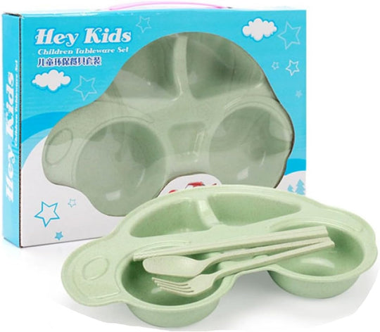 Cravista Car Shape Baby Food Plate with Anti-Slip Base and Cutlery Set (Green)